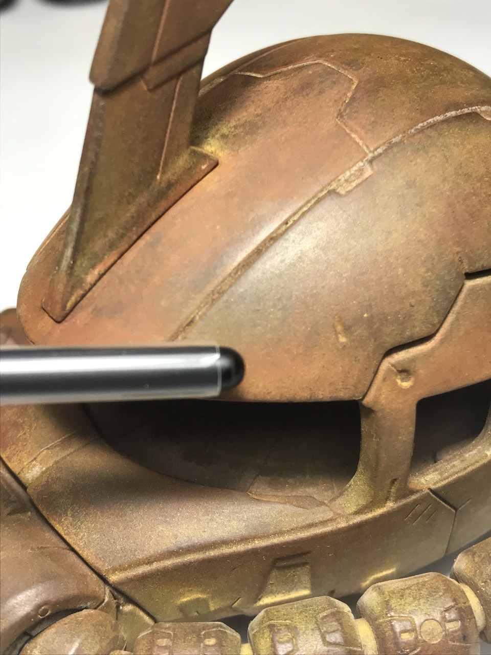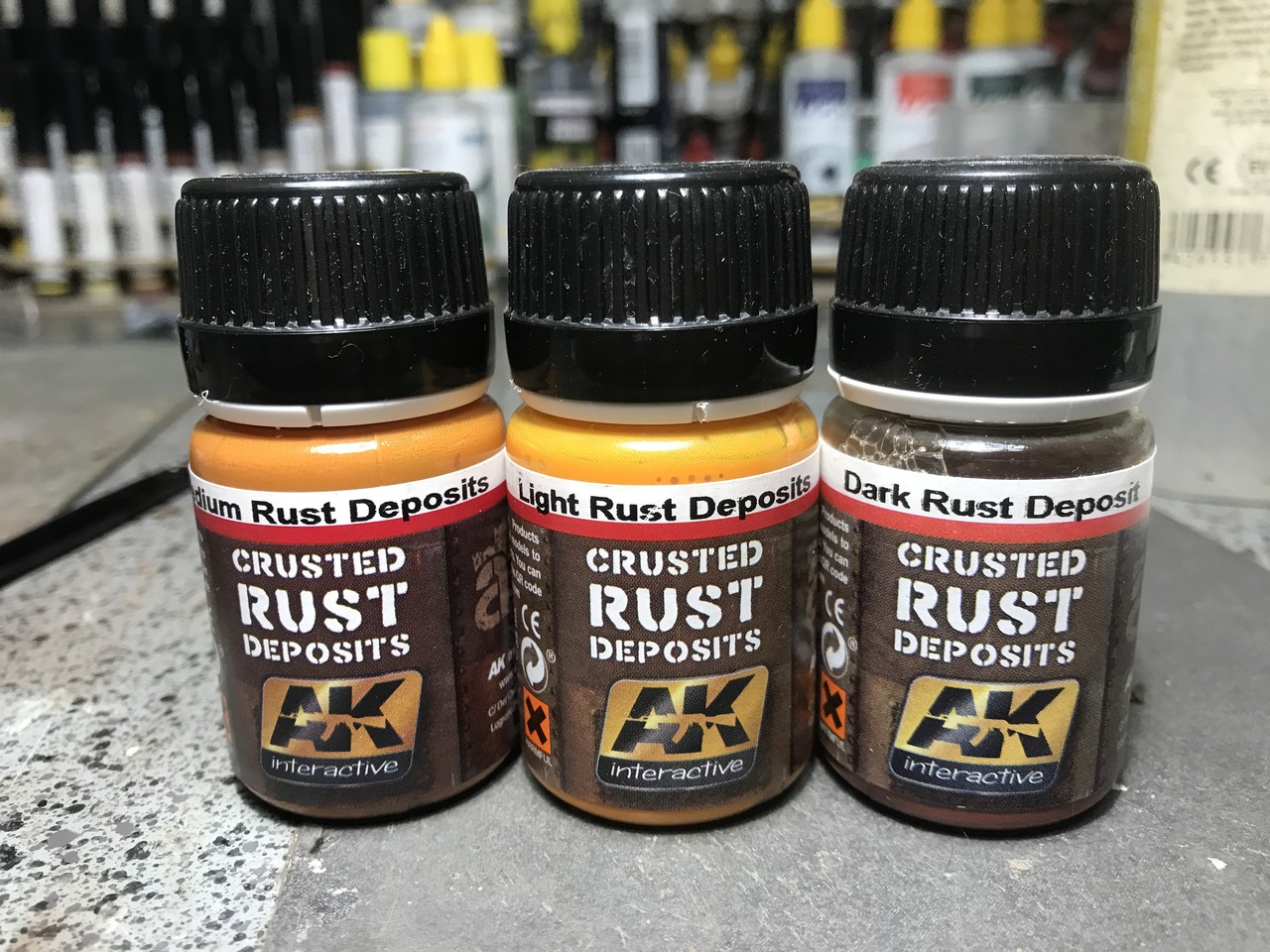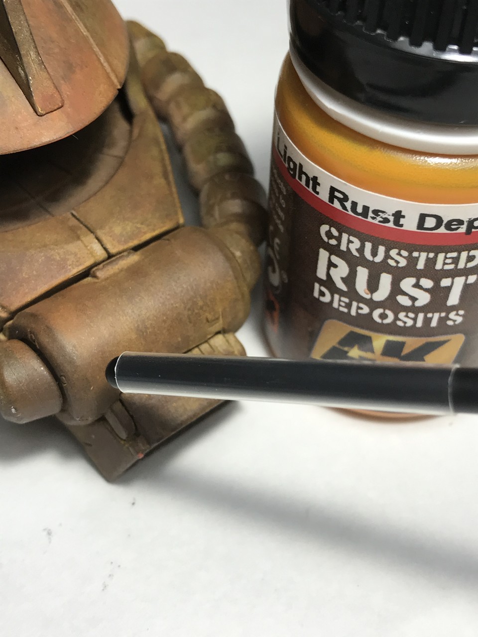ちょっとプロっぽく撮影w AKのDepositsの使い方です。まず1枚目の写真 乾くとこんな感じで白っぽくなっちゃいます。これはどのカラーでもなります。今度は乾いた筆でこの白いのを擦って伸ばして 塗ったとこと塗ってないとこの境界線消していきます。筆は必ず乾いたやつで そうすると2枚目 3枚目みたいになります。