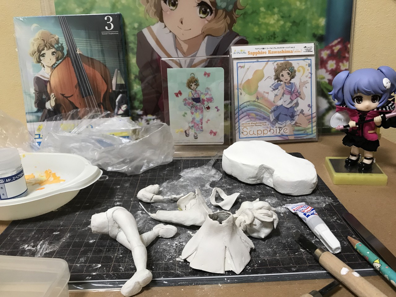 仕事が落ち着いてきたので緑輝ちゃんフィギュアの続きやった。削りに削った結果コンバスの凸凹がマシになってきた。顔も作り直したい https://plasticmodels.tokyo/media/L_wIU6-wEbdT_PN9FEU