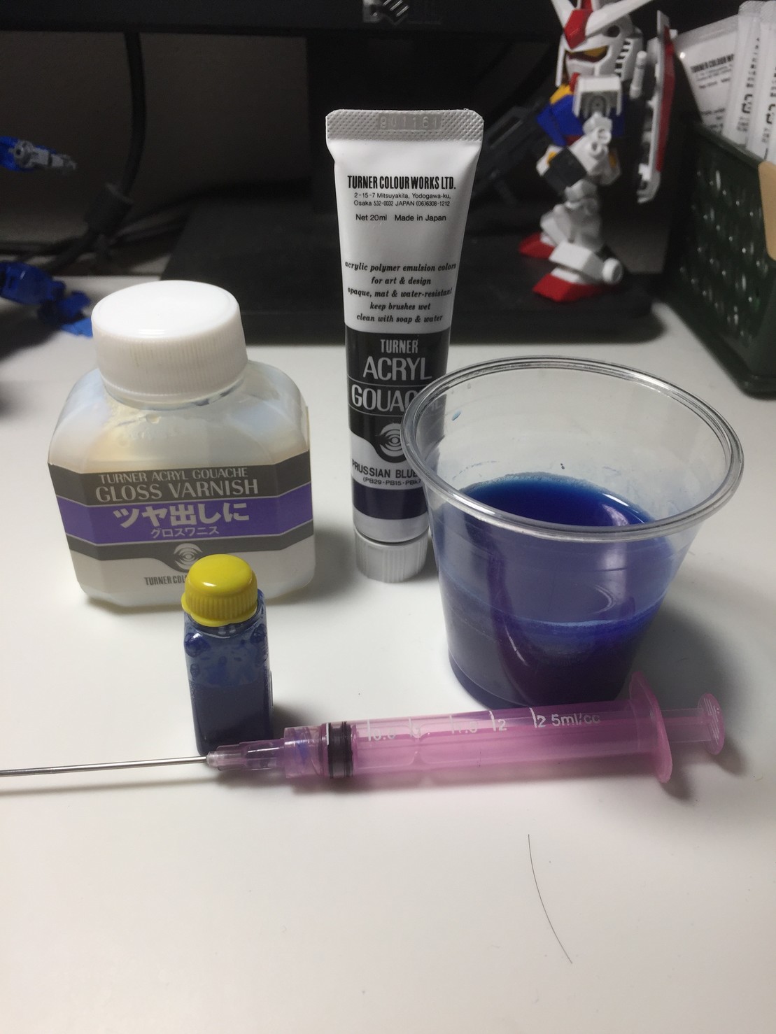 絵具測ってグロスワニス添加して水を加えて攪拌〜