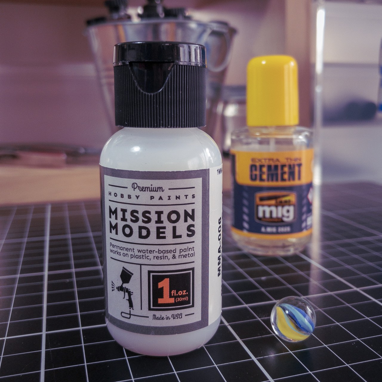 初めてミッションモデルズの塗料1本使い切ったので撹拌ボール取り出してみたら、思ったよりも大きいビー玉が出てきた...😀