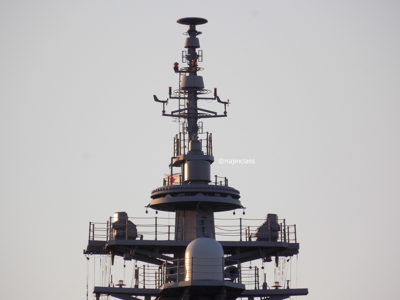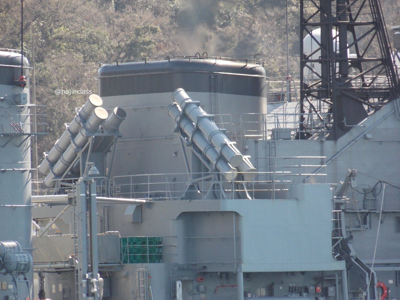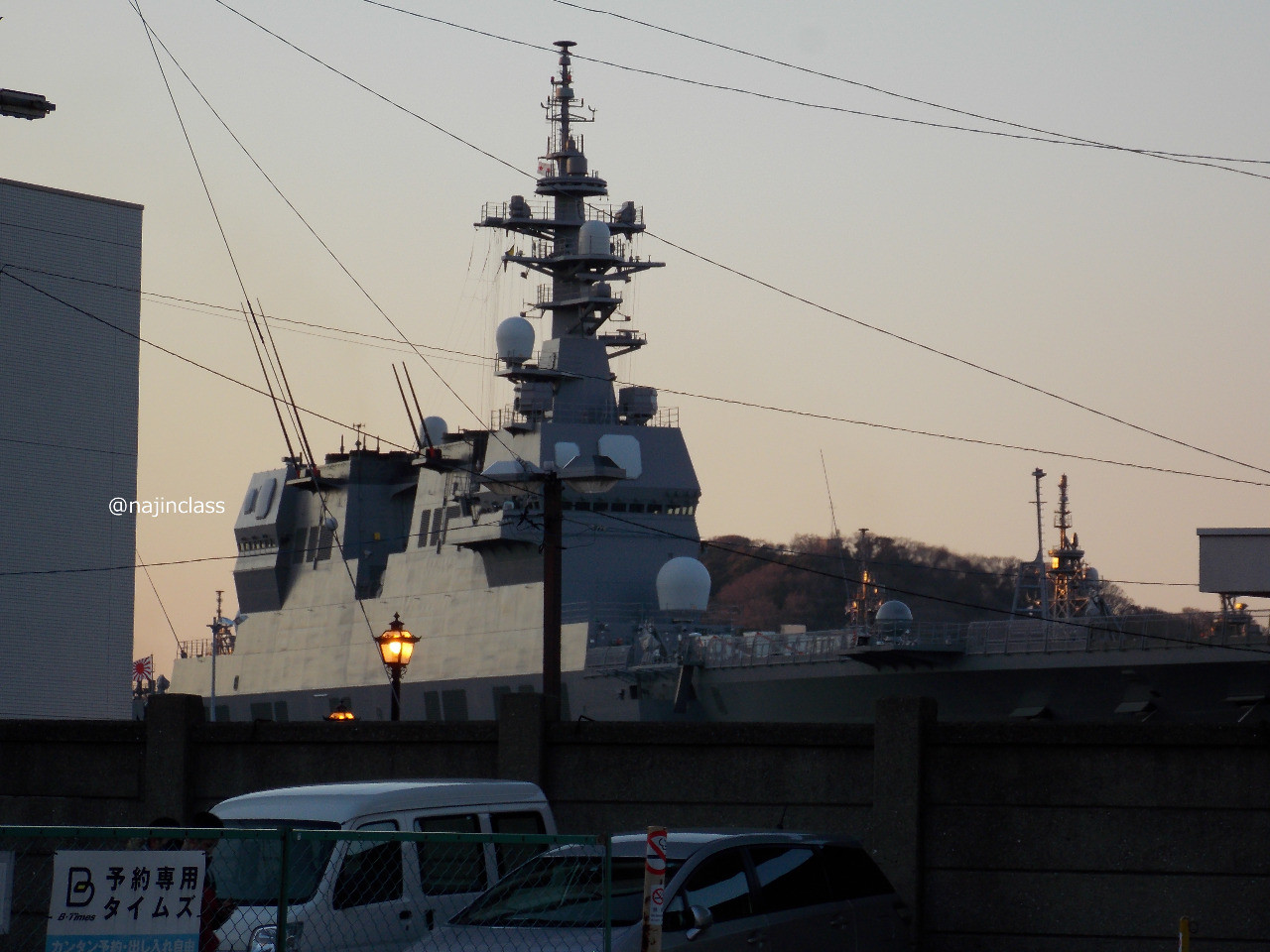 長距離通信アンテナとかマストとかFCS-3の多機能レーダーなど。 (海将補旗が掲揚されていました。)