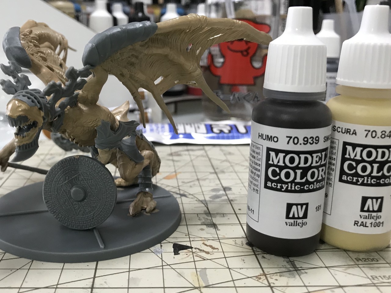 鐘のガーゴイル塗りました。ベースは薄い茶色(結局肌色っぽくなってしまった)と鎧はブロンズを塗りました。口の中は朱色を入れて、歯はぴかぴかのホワイト。