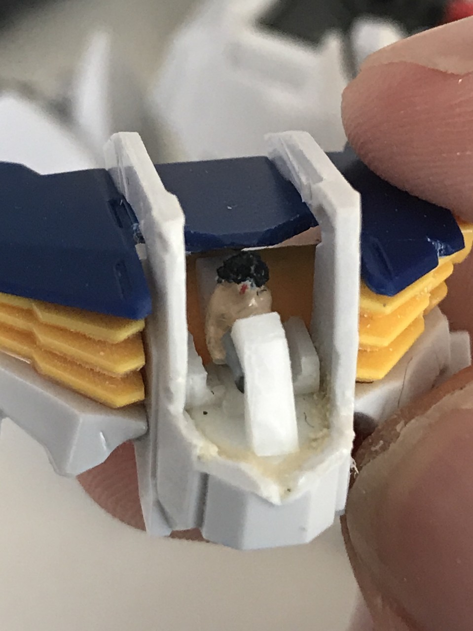 1/144 三日月さんは鉄道模型のフィギュアを利用しました。中学生シリーズの座っているものを使っています。
