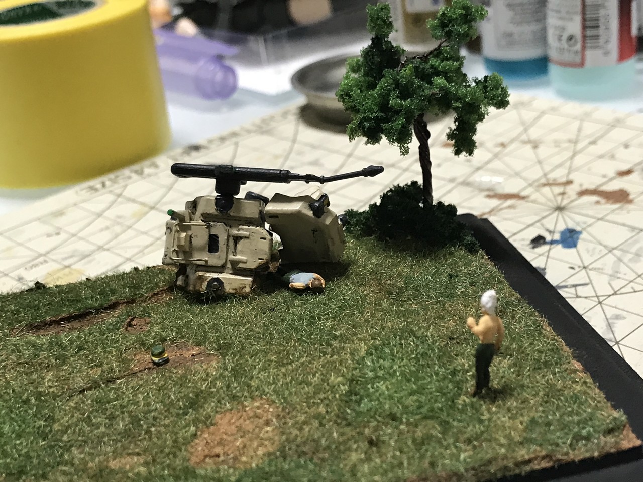 ジオラマ完成しました。イラストや汚しなどもっとやりたいことはあるけど、キリがないのでここにて完成としちゃいました。近くのボークスに持っていきますー。